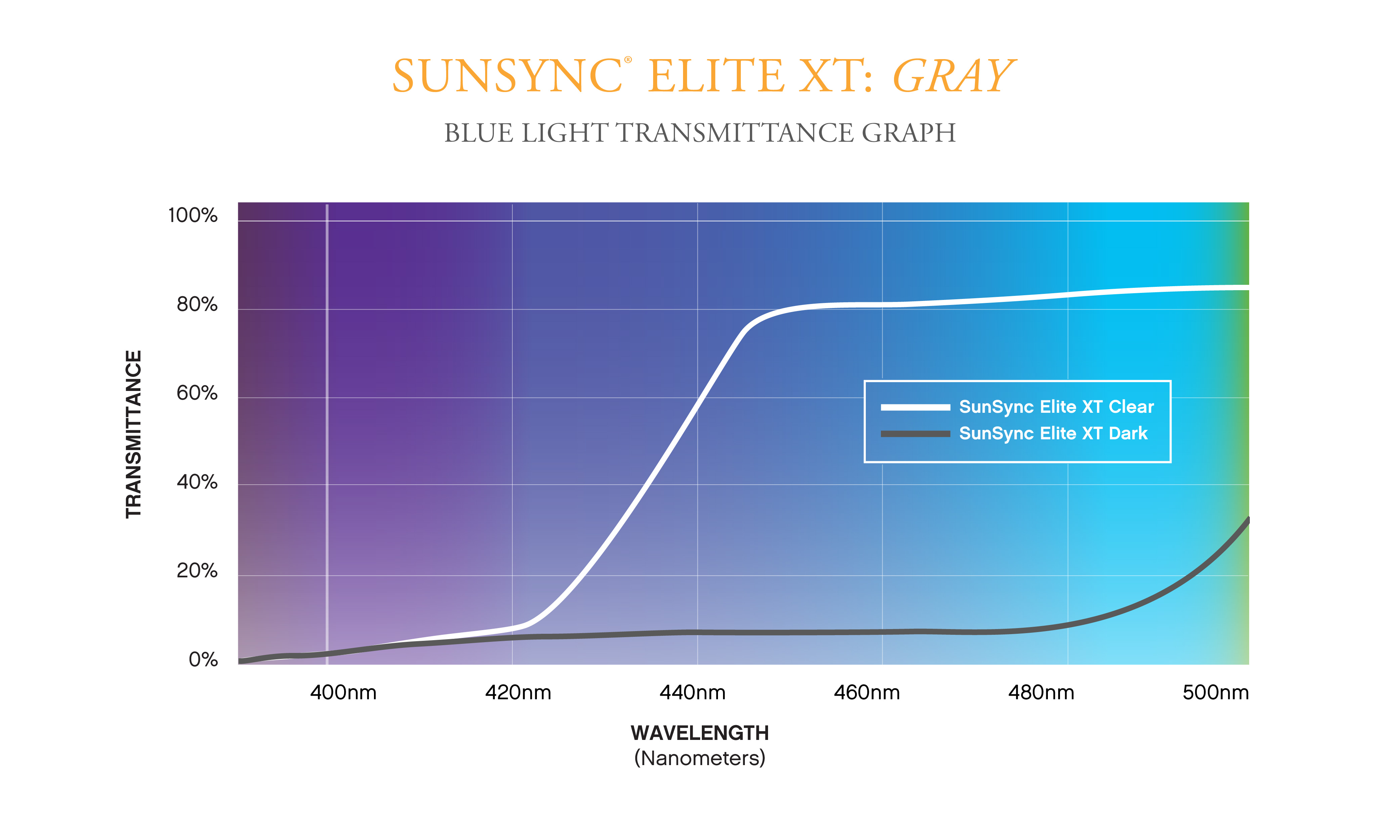 SunSync Elite and SunSync Elite XT go from dark to clear and clear to dark in seconds,3 providing exceptional blue light filtration in both states, thus making them an ideal, always-on solution for filtering blue light.